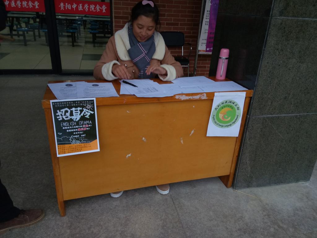 为了丰富同学们的大学生活,培养英语学习的兴趣,2016年11月30日大外部英语俱乐部决定为了“我学我show,第二届英语配音大赛”的表演节目进行话剧演员招募活动,分别于早、中、晚三批次在新老食堂摆点招募。俱乐部收到了很多同学的报名,感受到了同学们对英语的热爱与自身的肯定。他们热爱话剧并希望能有机会上台表演。这次的配音大赛也给他们提供了平台,能将自己的才能展现给大家。