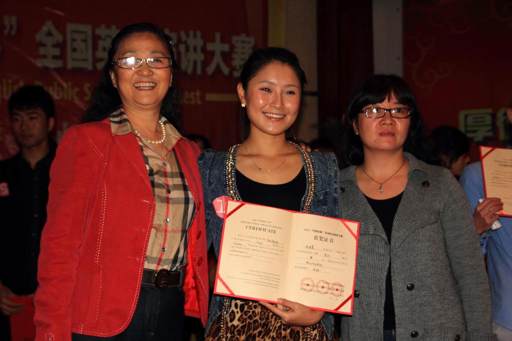 由外语教学与研究出版社主办的2011年“外研社”杯全国大学生英语演讲比赛(原“CCTV”杯全国大学生英语演讲比赛)贵州赛区复赛于2011年11月4日在贵州财经学院举行。我院外语教学部经院内多次选拔,选出2007级护理学(护理英语方向)班潘靖菁、刘越,2008级中医学(中西医英语方向)班申明明三名选手代表贵阳中医学院参加这次复赛。在比赛中他们得体的仪表、出色的发挥、流利的表达、自然的表情、机敏的回答征服了在场的评委和观众,赢得了在场所有评委、老师和同学们阵阵热烈的掌声和赞许。经过激烈的竞争,最终潘靖菁同学夺得了2011年“外研社”杯全国大学生英语演讲比赛贵州赛区复赛一等奖、刘越和申明明同学夺得了2011年“外研社”杯全国大学生英语演讲比赛贵州赛区复赛三等奖的优异成绩。届时,潘靖菁同学将代表我省参加于今年12月在北京举行的2011年“外研社”杯全国大学生英语演讲比赛半决赛和决赛。在此,对这三位同学取得的成绩表示祝贺,同时也预祝潘靖菁同学在半决赛和决赛中再接再厉,创造出更加优异的成绩。
